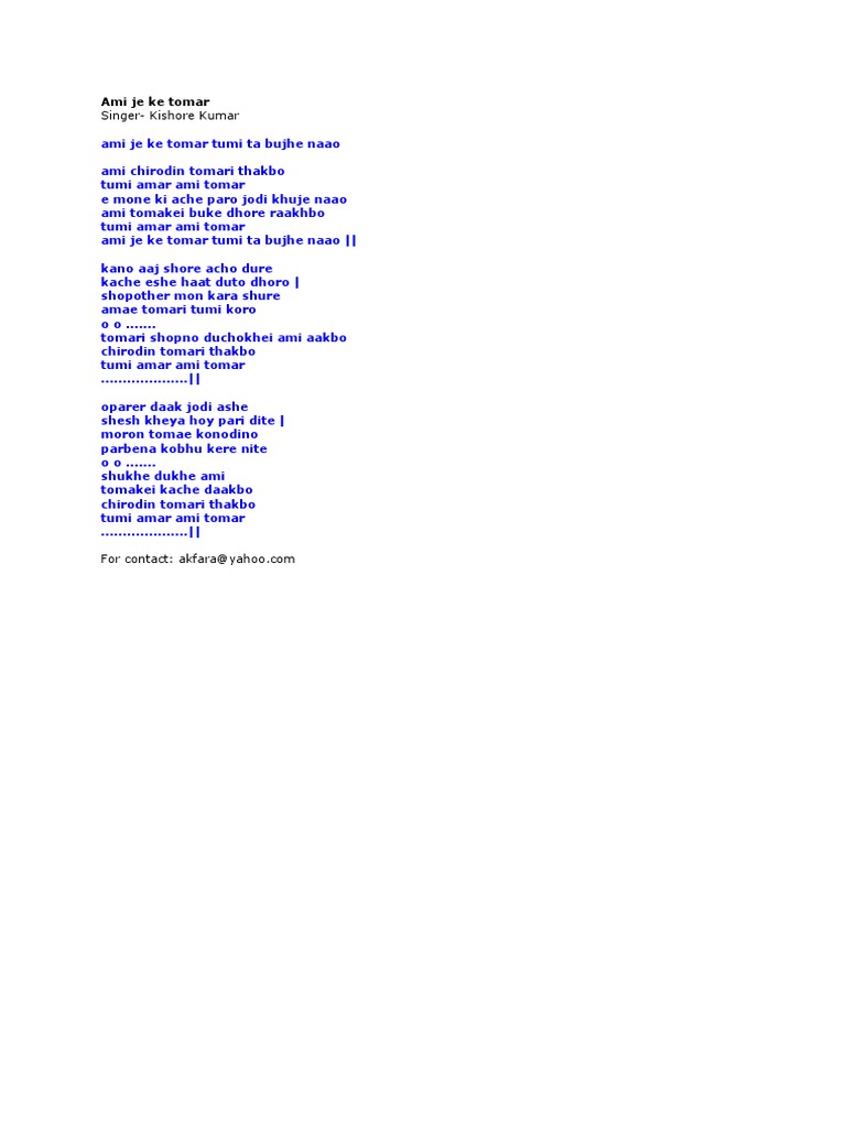 Ami Je Ke Tomar Lyrics Kishore - Na janiye lok, dekha debe chokh bolona e kemon.
