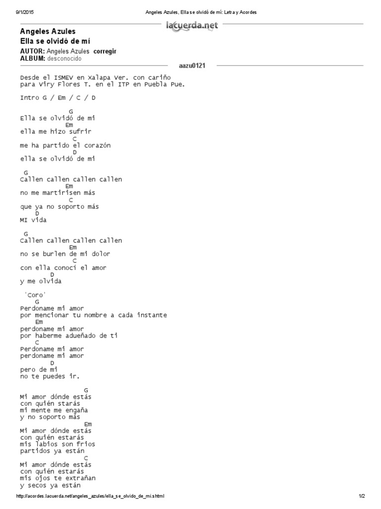 Angeles Acordes : Letra y acordes de angeles fuimos.