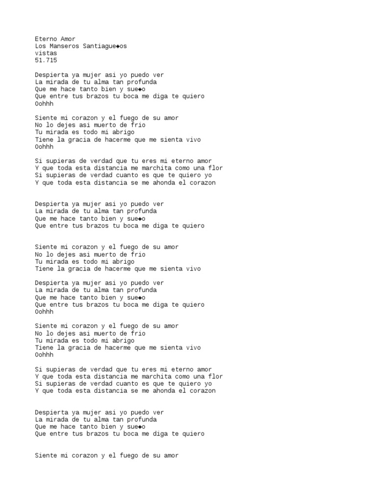 Eterno Amor Los Manseros Santiaguenos Letra Y Acordes - Acordes de cuerdas de amor, de las ultimas canciones que pudo sacar este gran artista!!