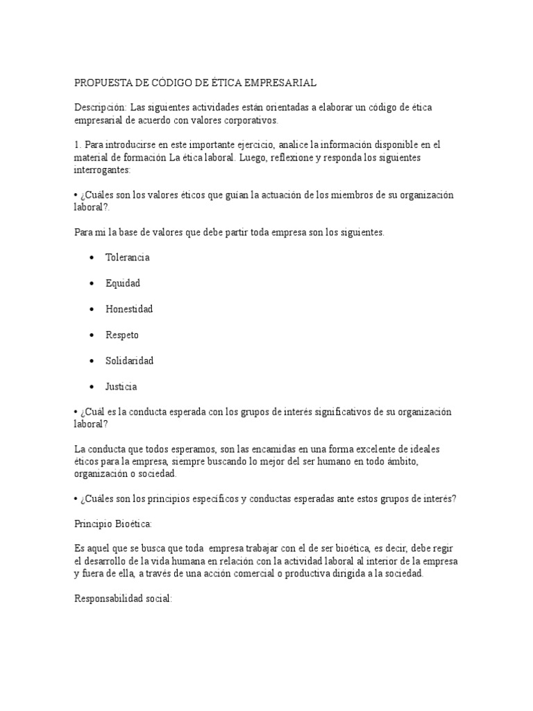 Propuesta De Codigo De Etica Empresarial Comportamiento Calidad Comercial - La etica empresarial es un tema de gran importancia porque nos afecta a todos como bueno esos serian algunos de los ejemplos donde se demuestran los valores positivos.