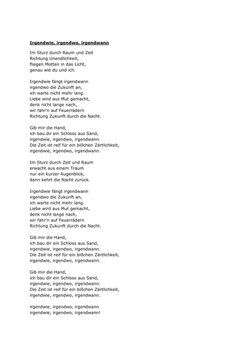 Nena Irgendwie Irgendwo Irgendwann Lyrics Deutsch : Perevod pesni irgendwie, irgendwo, irgendwann — reyting: Nena Irgendwie Irgendwo Irgendwann Lyrics Deutsch / Irgendwie, irgendwo, irgendwann is a 1984 song by nena which was a commercial success in europe.