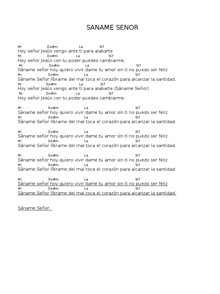Saname Señor Letra Y Musica / Letras de saname senor por eli. Saname Señor Letra Y Musica : Fr thomas mathew y fray miguel nunez.