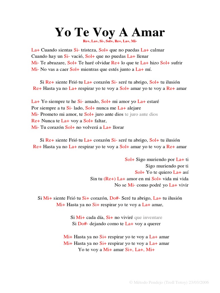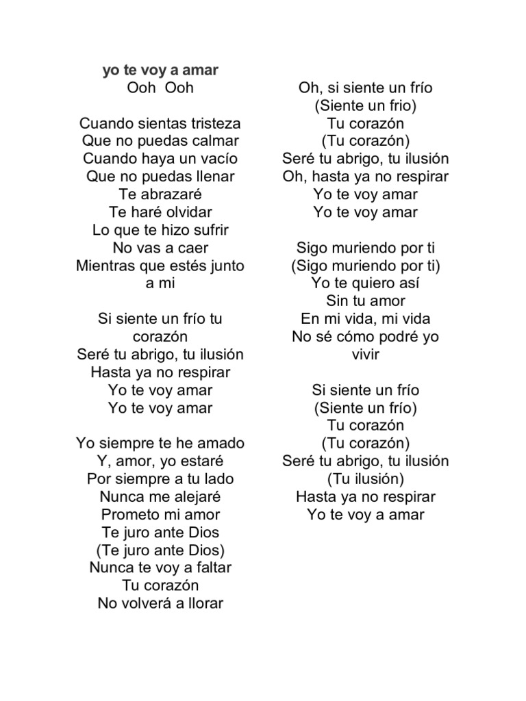 Yo Te Voy A Amar Acordes Y Letra Para Guitarra Ukulele Bajo Y Piano - Yo siempre te amado mi amor yo estare por siempre a tu lado nunca me alejare prometo mi amor te juro ante dios nunca te voy a faltar tu corazon no volvera a llorar si siente un frio tu corazon sere tu abrigo tu ilusion.